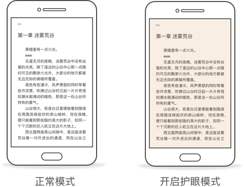 连尚读书推出贴心护眼模式,能够过滤掉屏幕中的大部分有害蓝光,在保证阅读体验的同时大大减轻眼部负担,为所有读者的双眼保驾护航。启动护眼模式后,画面会与原先产生一定的色差,这是因为蓝光的缺失使所有像素的RGB值产生了变化。建议使用系统推荐值,以保证护眼与阅读体验的平衡。